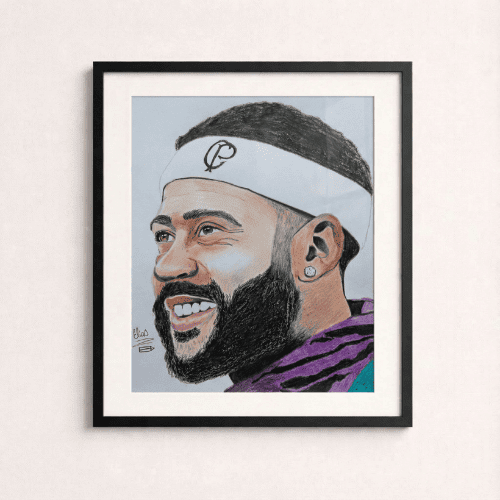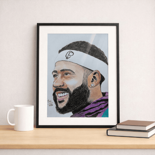 Este Quadro Decorativo Jogador Меmрhіѕ Dерау é uma obra criada por Elias, jovem artista que utiliza o desenho como forma de expressão, foco e superação.