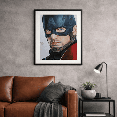 A arte retrata o herói com um olhar firme e determinado, transmitindo valores como coragem, disciplina e perseverança. O nível de detalhe e a composição equilibrada tornam a peça ideal para ambientes modernos, geeks ou criativos, agregando personalidade à decoração.